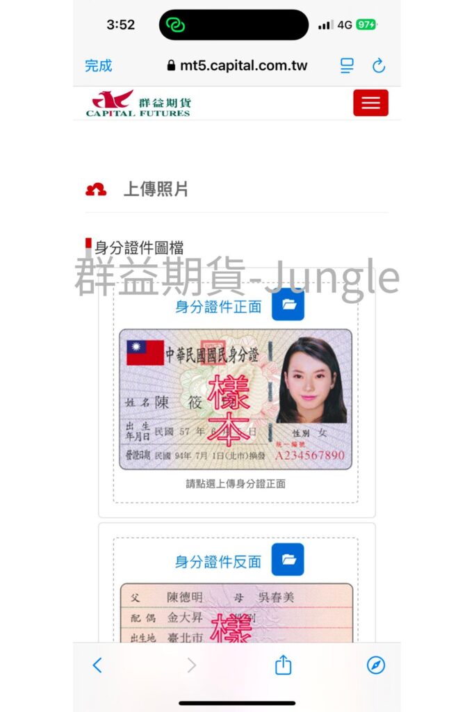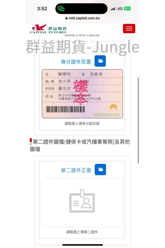 上傳第二證件,須有照片,請橫著拍有照片那面,字須看的清楚,勿反光。