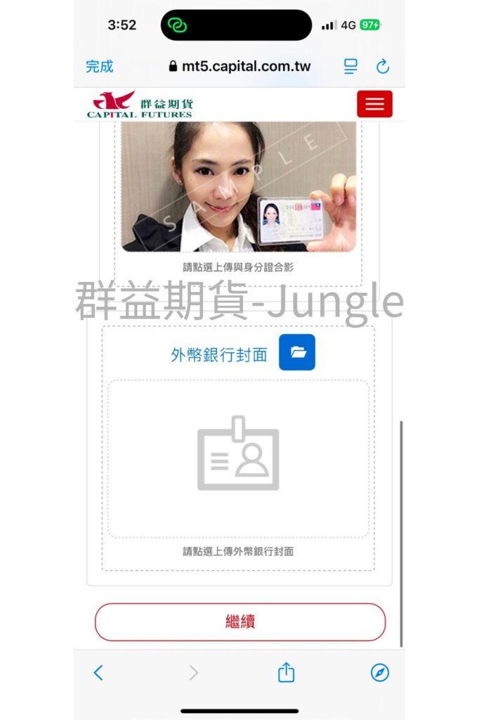 上傳外幣存摺封面,可用電子存摺封面,須包括帳號、戶名、分行名。