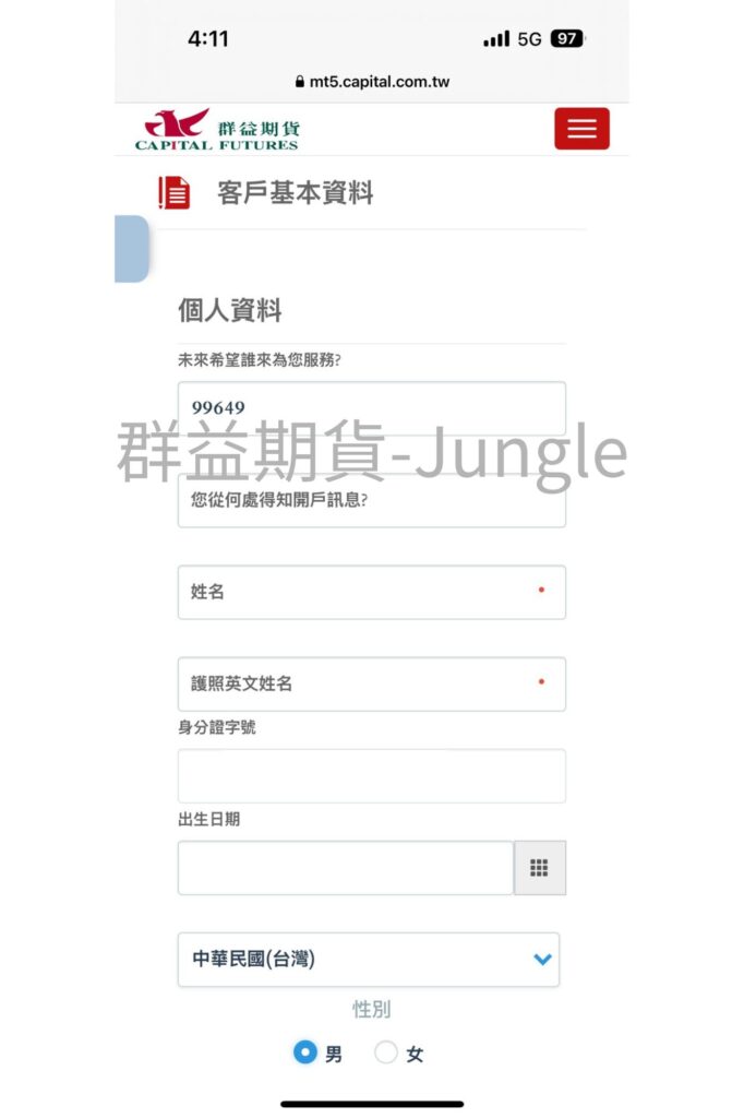 填資料,未來希望誰來為您服務?請填”謝琮凱”或是”99649″。何處得知開戶訊息可以不用填,英文姓名如沒護照,可以用外幣存摺上的英文戶名照打即可。