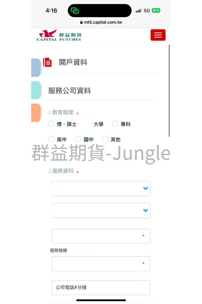 填資料,職業類別若無符合前四項就請選其他行業,選後會有空格處出現,再請以手打補充,例如家管就選其他行業->家管->無