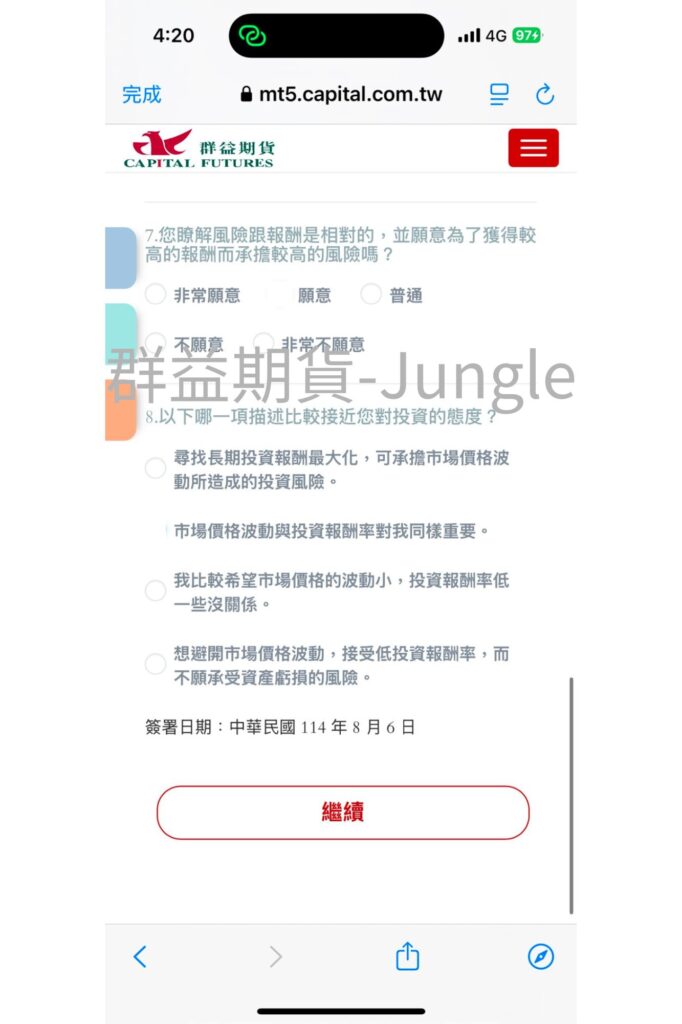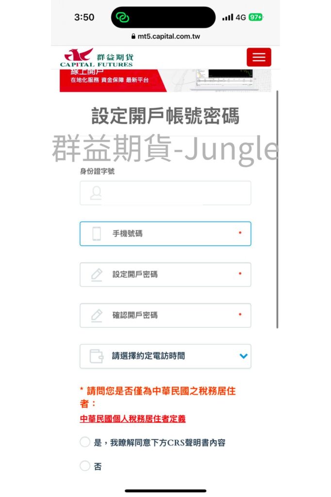 設定開戶密碼,此密碼在開完戶就沒作用了,但在這期間還請先記好。約定電訪時間是內勤人員會撥打一通電話,確認一下基本資料,所以就選方便接電話的時間。