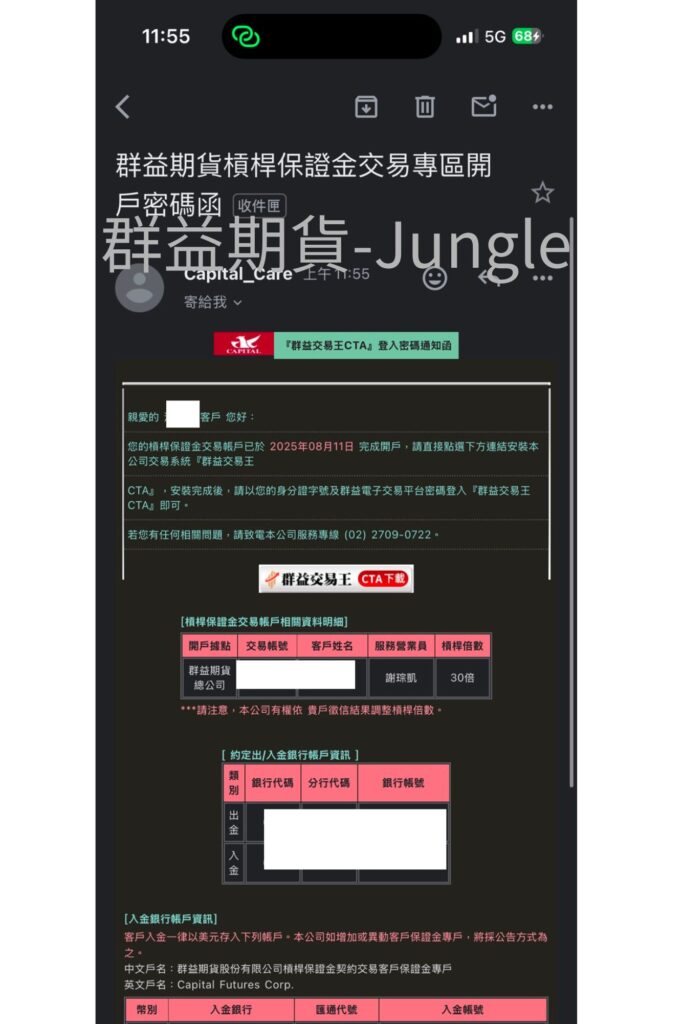 完成後,會寄封密碼函到信箱,裡面含帳號、密碼(PDF附件)、